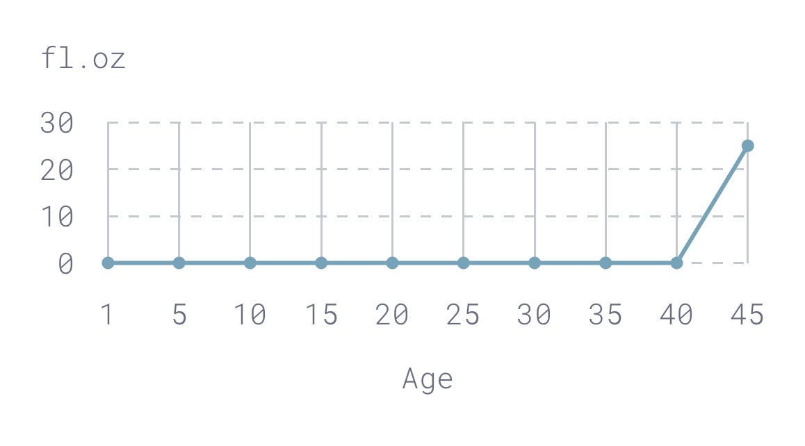 This graph illustrates my lifetime consumption of bourbon as of this writing. Nikki said “what a great way to document your burgeoning alcohol habit”. 😏